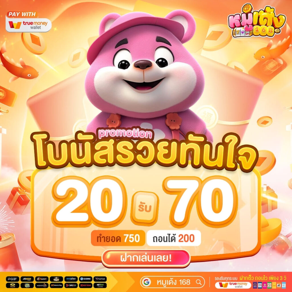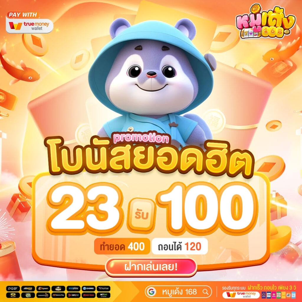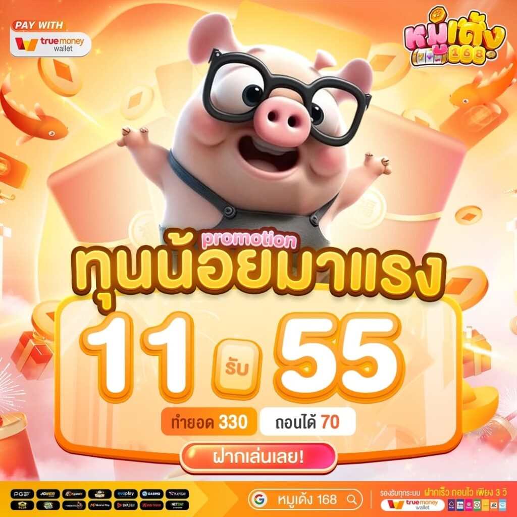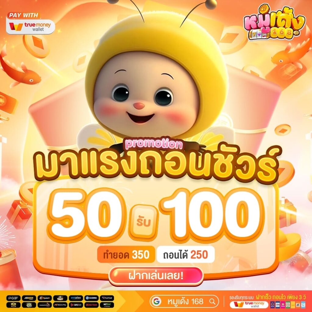 หมูเด้ง168 เว็บสล็อต กีฬา คาสิโน โดดเด่นด้วยโปรโมชั่นสุดพิเศษที่ตอบโจทย์ทุกงบประมาณ ไม่ว่าคุณจะเป็นมือใหม่หรือเซียนเดิมพัน โปรทุนน้อย 10 รับ 100 ก็พร้อมช่วยเพิ่มโอกาสให้คุณทำกำไรได้ง่ายขึ้น นอกจากนี้ เรายังรองรับการฝาก-ถอนผ่านระบบออโต้ทั้งธนาคารและทรูวอเลท สะดวก รวดเร็ว ปลอดภัย และไม่มีขั้นต่ำ ให้คุณจัดการธุรกรรมได้ตลอด 24 ชั่วโมง